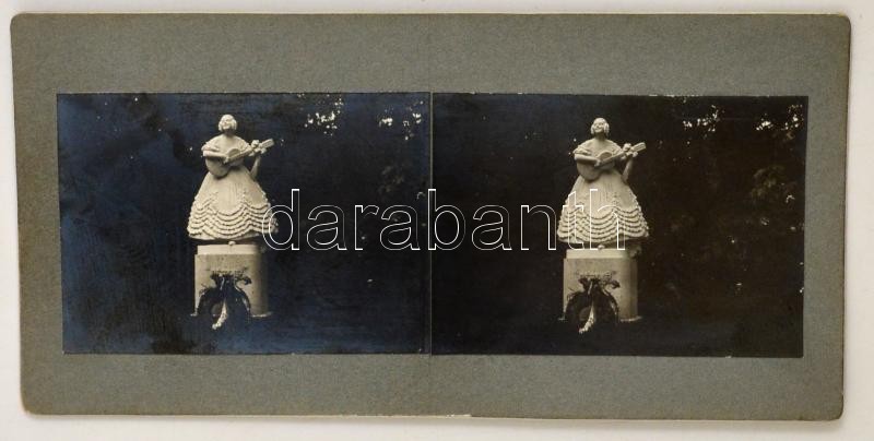 Beschreibung: 1936 Budapest I. Horváth-kert, Déryné szobra, sztereófotó, 9x18 cm