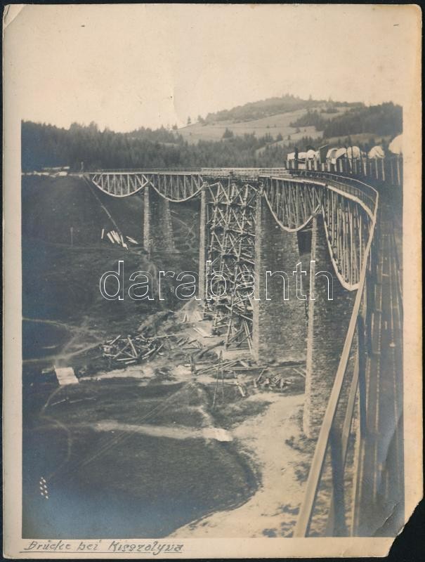 Beschreibung: Kisszolyva (ma: Skotars'ke), vasúti völgyhíd, fotó, feliratozva, az egyik sarka sérült, 11,5×8,5 cm