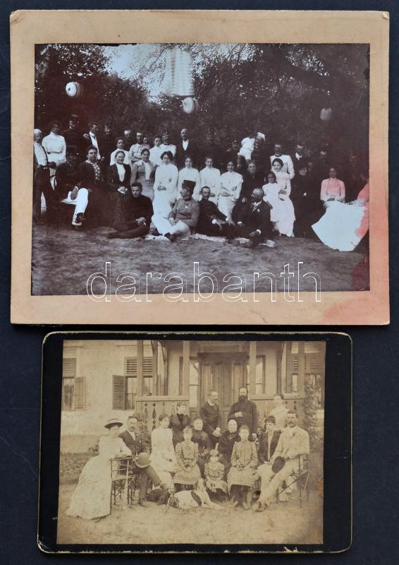 cca 1890-1900 Zalacsány, Batthyány uradalom kerti partijának vendégei, 2 db fotó kartonon, az egyik foltos, a másik kartonján kopásnyomokkal, 11x16 cm és 19,5x16 cm