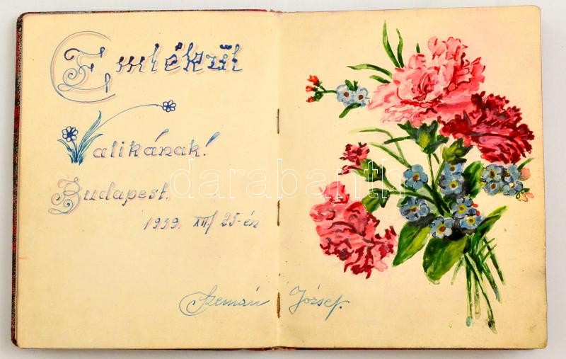 1939-1940 Régi emlékkönyv, szöveges bejegyzésekkel, színes, szép rajzo... https://www.darabanth.com/de/335-Fernauktion/335.0/Kunst-Dokumente-andere-Sammelgebiete/Historische-Dokumenten-Handschriften~500018/1939-1940-Regi-emlekkonyv-szoveges-bejegyzesekkel-szines-szep-rajzokkal~II1881005