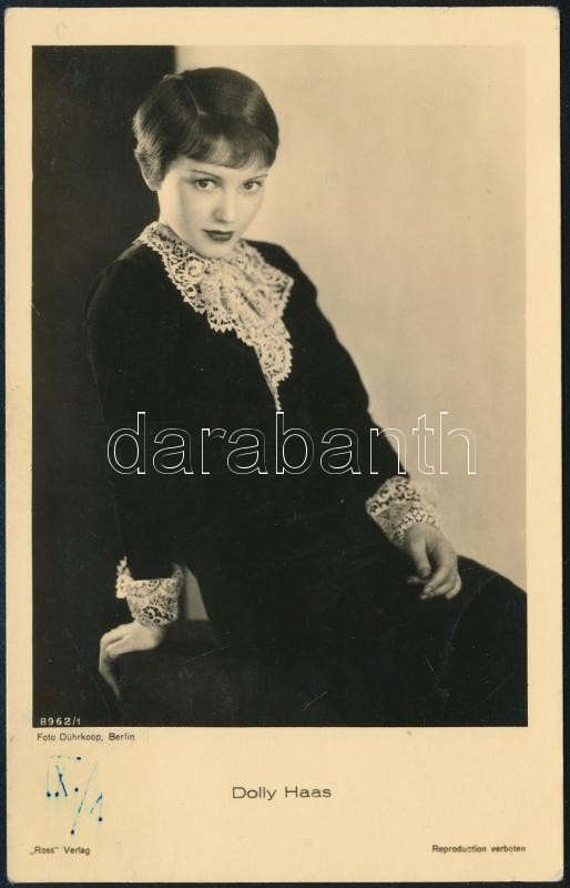 Dolly Haas (1910-1994) színésznő aláírása az őt ábrázoló fotólap hátol... https://www.darabanth.com/de/335-Fernauktion/335.0/Kunst-Dokumente-andere-Sammelgebiete/Signatur~500020/Dolly-Haas-1910-1994-szineszno-alairasa-az-ot-abrazolo-fotolap-hatoldalan~II1879389