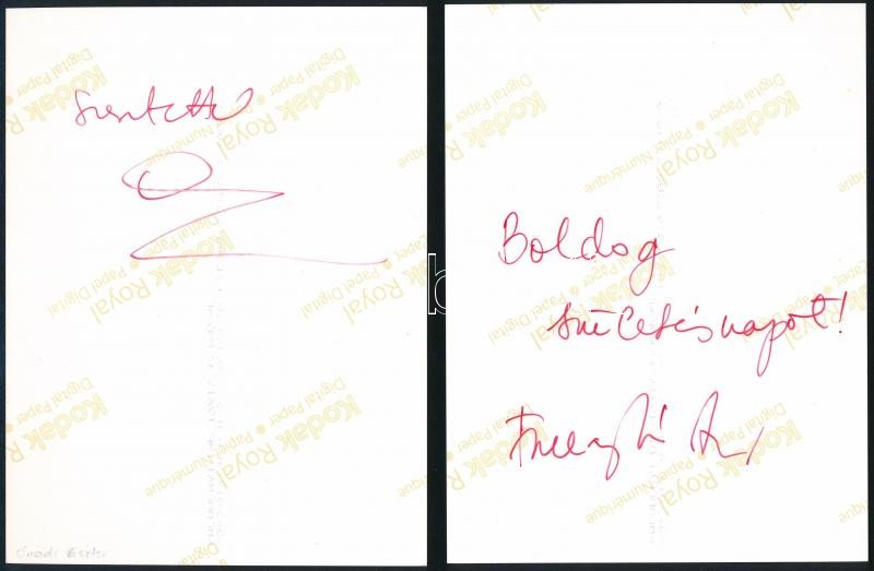 Beschreibung: Fullajtár Andrea (1973-) és Ónodi Eszter (1973-) színésznők aláírása az őket ábrázoló fotó hátoldalán