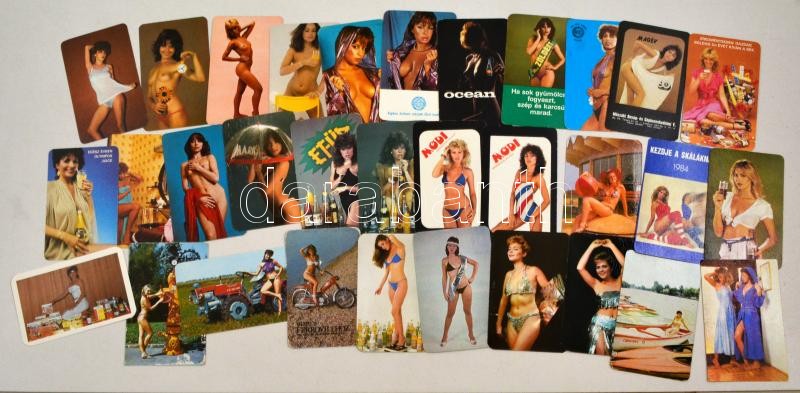 Beschreibung: 1984 32 db hölgyeket ábrázoló kártyanaptár, közte erotikus is
