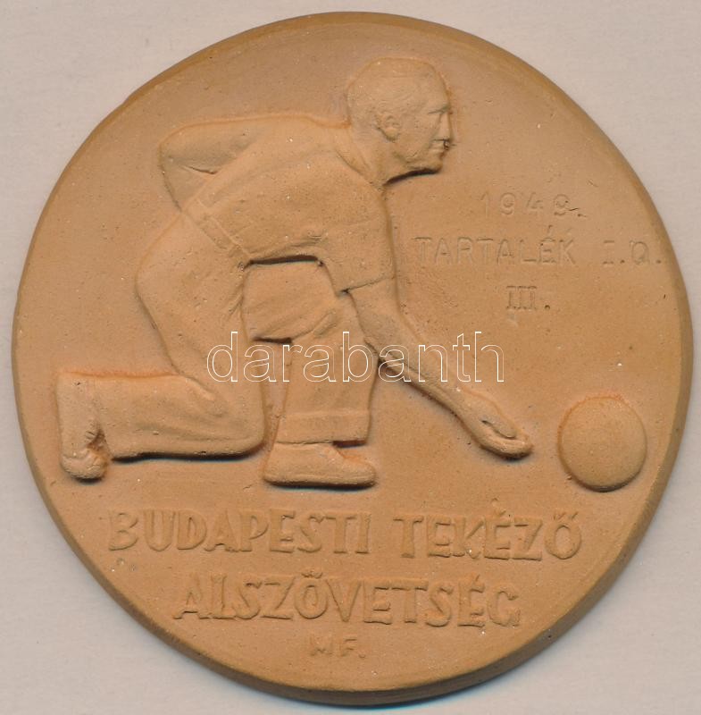 Matzon Frigyes (1909-1986) 1949. "Budapesti Tekéző Alszövetség" kerámia emlékérem (75mm) T:2