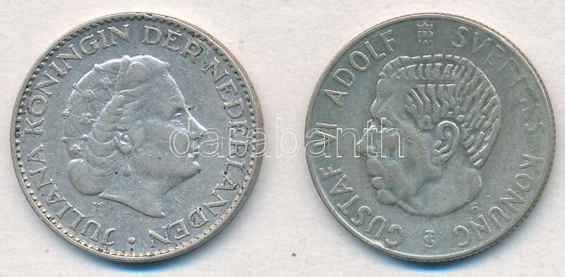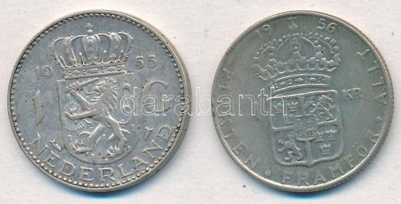 Vegyes: Hollandia 1955. 1G Ag + Svédország 1956TS 1K Ag T:2 Mixed: Netherlands 1955. 1 Gulden Ag + Sweden 1956TS 1 Krona Ag C:XF