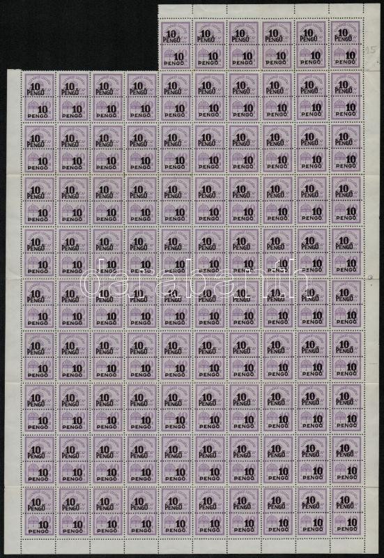 Beschreibung: 1945 10P/10f számlailleték bélyeg középen hajtott 96-os ívdarab (144.000)