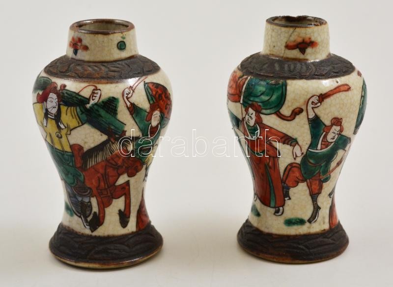 Beschreibung: Kézzel festett távol keleti váza pár, sérült, jelzés nélkül, m:12 cm (2×)