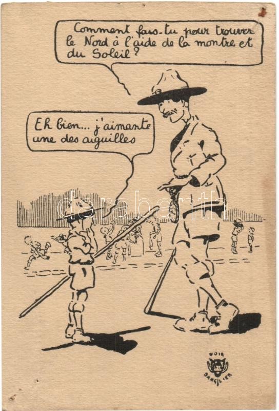 Beschreibung: French scout boy art postcard (apró lyukak / tiny holes)