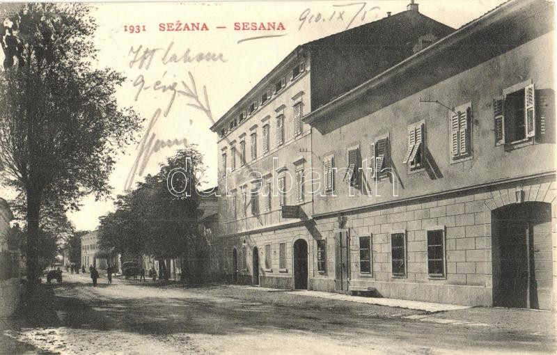 Sezana, Sesana; street view, hotel https://www.darabanth.com/de/336-Fernauktion/336.0/Ansichtskarten/Slowenien~1000026/Sezana-Sesana-street-view-hotel~II1888421
