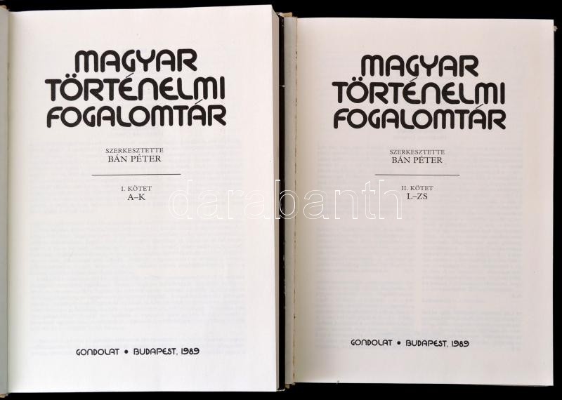 Bán Péter(szerk.): Magyar történelmi fogalomtár I-II. kötet. Bp., 1989... https://www.darabanth.com/de/336-Fernauktion/336.0/Bucher/Bucher-Geschichte~2000004/Ban-Peterszerk-Magyar-tortenelmi-fogalomtar-I-II-kotet-Bp-1989-Gondolat-Kiadoi-ege~II1847620