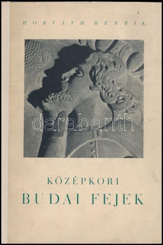 Horváth Henrik: Középkori budai fejek. Bp.,1941, Budapest Székesfőváros, 46+2 p.+57 t. ((I-L. számozva, a IV, XIII, XXVI, XLIIIXLVIII. lapnál melléklapok)+13 p. Átkötött félvászon-kötés, az eredeti elülső borítót bekötötték, a címlap hátoldalán tiszteletpéldány bebélyegzéssel, névbejegyzéssel a címlapon.