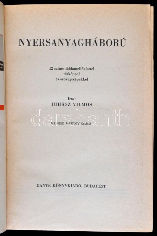 Juhász Vilmos: Nyersanyagháború. Bp., Dante. Kiadói félvászon kötés, e... https://www.darabanth.com/de/336-Fernauktion/336.0/Bucher/Bucher-Geschichte~2000004/Juhasz-Vilmos-Nyersanyaghaboru-Bp-Dante-Kiadoi-felvaszon-kotes-enyhen-kopottas-allap~II1866345