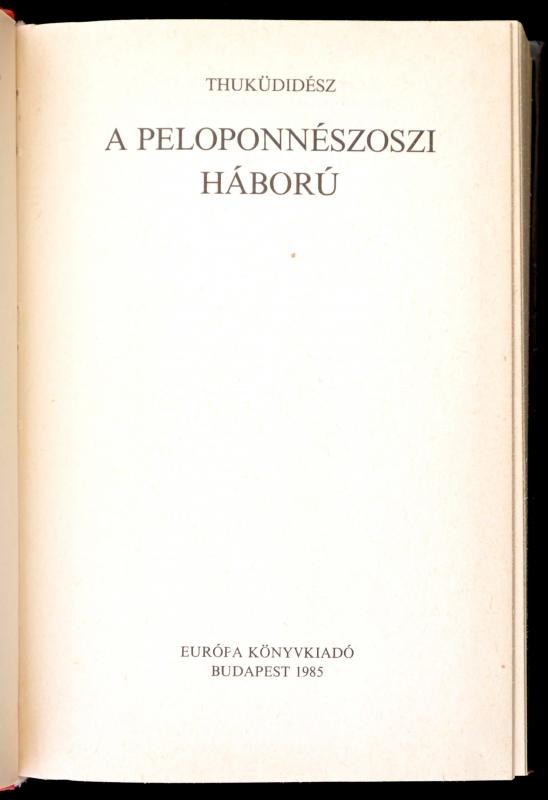 Thuküdidész: A peloponnészoszi háború. Fordította, a jegyzeteket és az utószót írta: Muraközy Gyula. Bp.,1985, Európa. Kiadói egészvászon-kötés, kiadói papír védőborítóban.