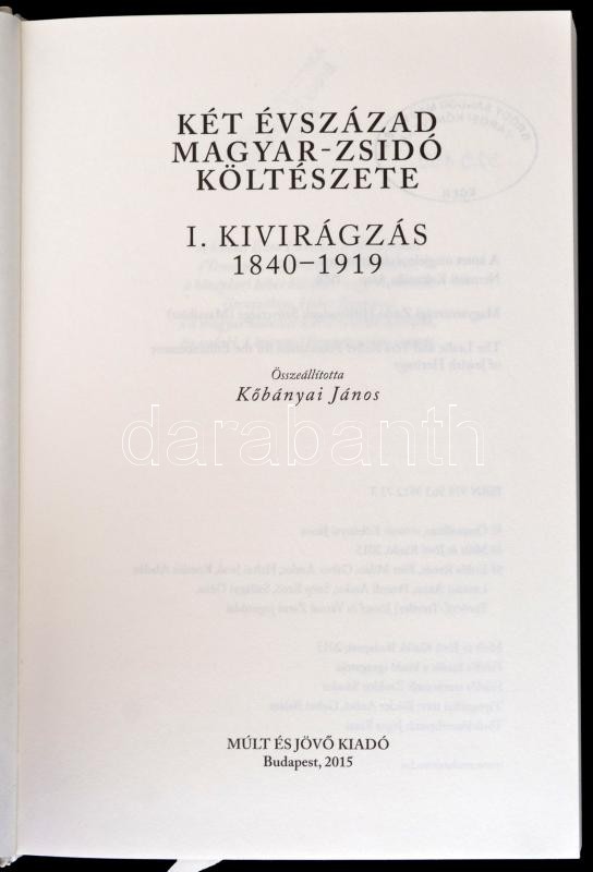Két évszázad magyar-zsidó költészete. I . Kivirágzás 1840-1919. Összeá... https://www.darabanth.com/de/336-Fernauktion/336.0/Bucher/Bucher-Judaica~2000013/Ket-evszazad-magyar-zsido-kolteszete-I-Kiviragzas-1840-1919-Osszeallitotta-Kobanya~II1860657