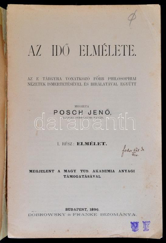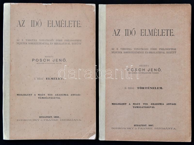 Posch Jenő: Az idő elmélete. I-II. kötet. I. kötet: Elmélet. II. kötet. Történelem. Bp.,1897, Dobrowsky és Franke. Javított gerincű kiadói papírkötés, a II. kötet nagyrészt felvágatlan lapokkal.