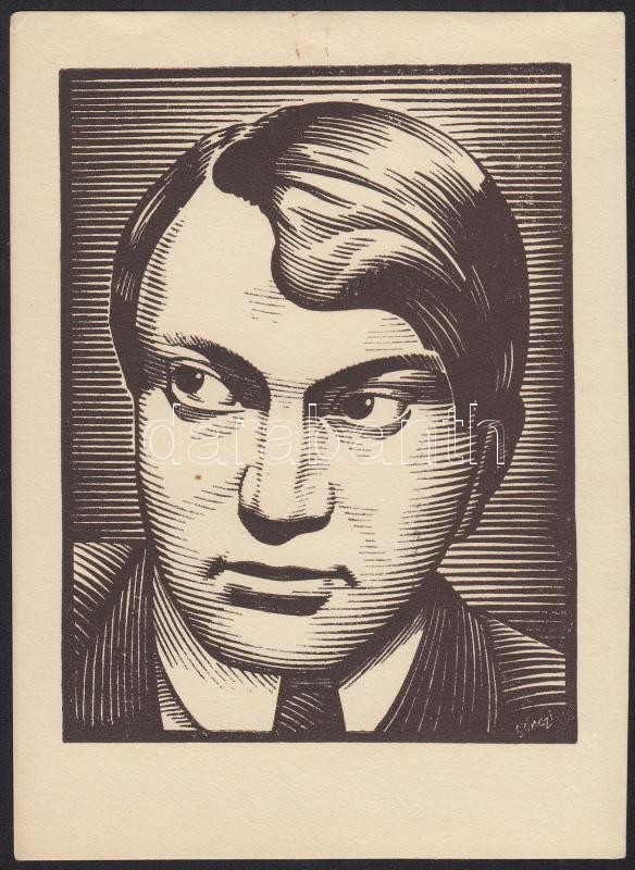 Beschreibung: Gönczi-Gebhardt Tibor (1902-1994): Ady Endre, fametszet, papír, jelzett a metszeten, 10×8,5 cm