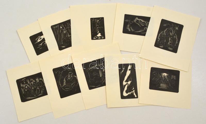 Beschreibung: Gy. Szabó Béla (1905-1985): Illusztrációk, 10 db fametszet, papír, jelzés nélkül, különböző méretben