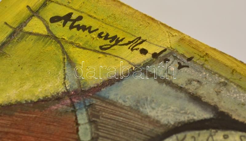 Beschreibung: Almássy jelzéssel: Kompozíció. Olaj, farost, 30×20 cm