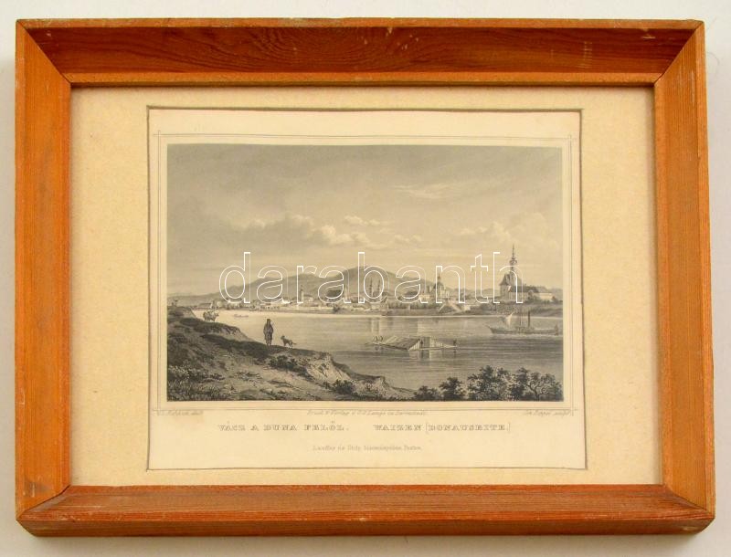 cca 1840 Ludwig Rohbock (1820-1883) - Johann Poppel (1807-1882): Vác a Duna felől. Waitzen (Donauseite.) Pest, Lauffer és Stolp. Papír, acélmetszet, paszpartuban, üvegezett fa keretben, 10,5x15,5 cm. / cca 1840 Ludwig Rohbock (1820-1883) - Johann Poppel (1807-1882): Vác from the Danube. Waitzen (Donauseite.) Pest, Lauffer and Stolp. Paper, steel engraving,in passepartout, in glassed wooden frame, 10,5x15,5 cm