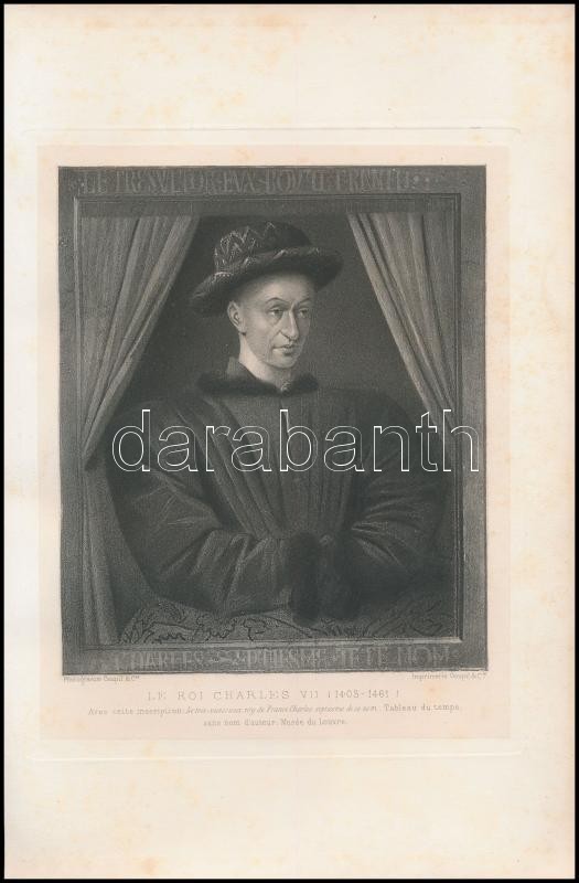 cca 1880 VII. Károly francia király, acélmetszet, Goupil & Compagn... https://www.darabanth.com/de/336-Fernauktion/336.0/Gemalde-und-Grafiken/Stich~500004/cca-1880-VII-Karoly-francia-kiraly-acelmetszet-Goupil-Compagnie-feliratozva-20C39716-cm~II1769386