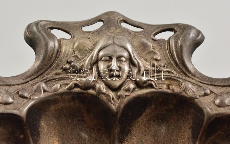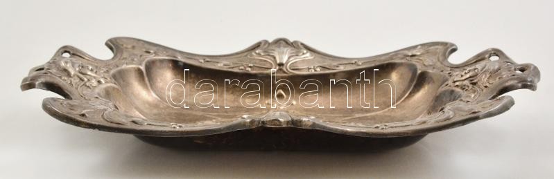 Beschreibung: Szecessziós alpakka tál, jelzés nélkül, apró lyukkal, 36×22 cm