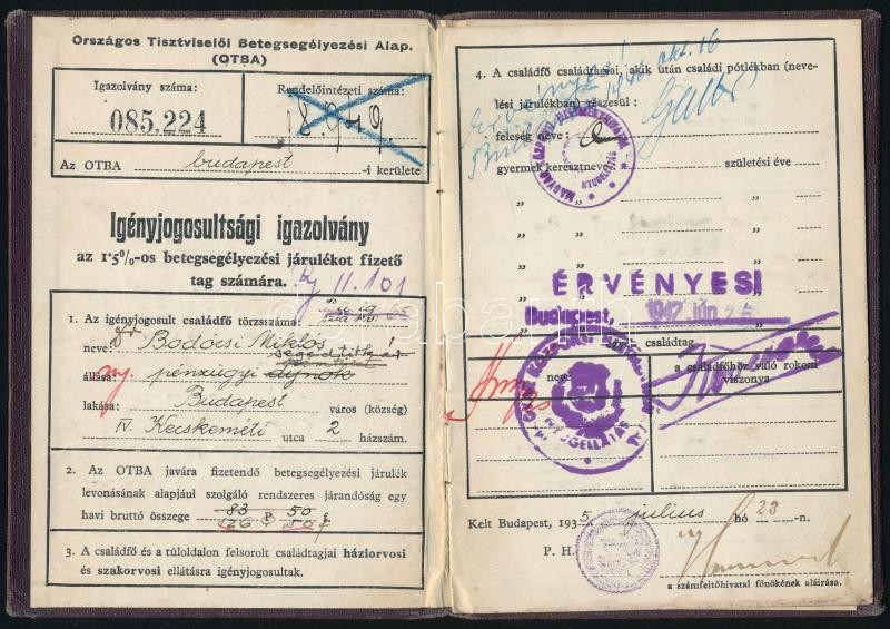 1935 Bp., Igényjogosultsági igazolvány betegsegélyezési járulékot fize... https://www.darabanth.com/de/336-Fernauktion/336.0/Kunst-Dokumente-andere-Sammelgebiete/Dokument~500017/1935-Bp-Igenyjogosultsagi-igazolvany-betegsegelyezesi-jarulekot-fizeto-tag-szamara~II1872053