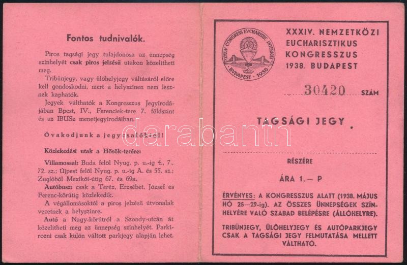 1938 az Eucharisztikus Kongresszus tagsági jegye közlekedési útmutatóv... https://www.darabanth.com/de/336-Fernauktion/336.0/Kunst-Dokumente-andere-Sammelgebiete/Dokument~500017/1938-az-Eucharisztikus-Kongresszus-tagsagi-jegye-kozlekedesi-utmutatoval-plus-program~II1885929