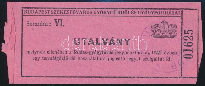 Beschreibung: 1940 Budapest Székesfőváros gyógyfürdői és Gyógyforrásai utalvány