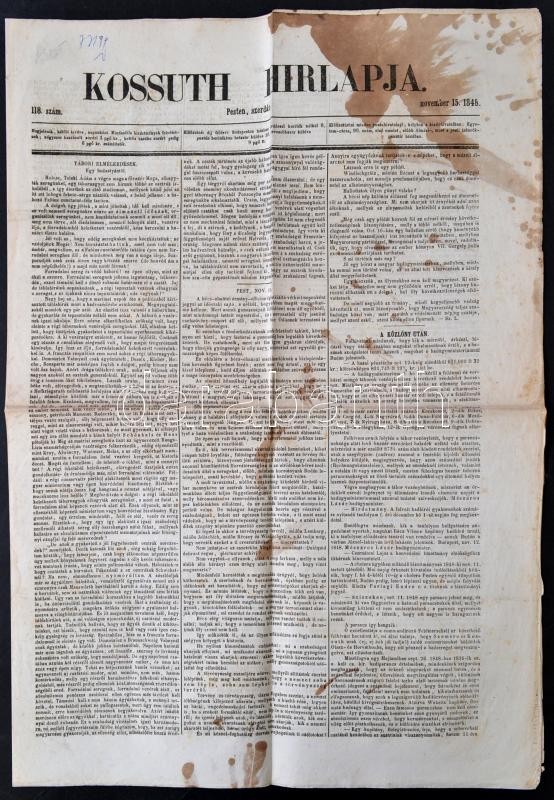 1848 Kossuth Hírlapja, 1848. nov. 15., 118. sz., Szerk.: Bajza József. Bp., Kozma Vazul, 519-522 p. Benne a kor, a forradalom és szabadságharc aktuális híreivel. Foltos.