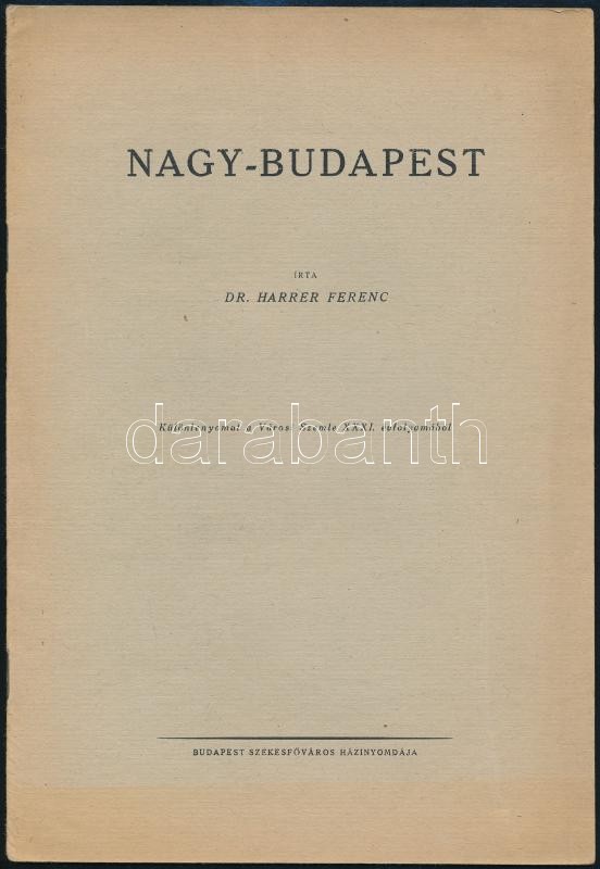 Beschreibung: 2 Budapest témájú különlenyomat: dr. Borsos Béla: A Királyfürdő helyreállítása, dr. Harrer Ferenc: Nagy Budapest.