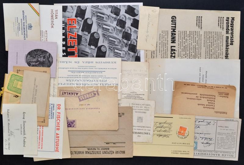 Vegyes nyomtatvány és reklám tétel, benne Elzett reklám prospektus, MTA irodaszolga 1914-es újévi üdvözlő kártyája, Dr. Angyal Dávid (1857-1943) egyetemi tanár névjegykártyája, ..stb, összesen 23 db,