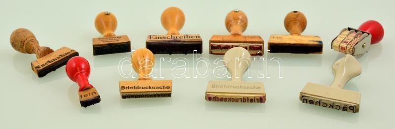 Beschreibung: 10 db német fa és fém postai bélyegző