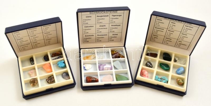 Beschreibung: 31 db csiszolt ásvány gyűjtői dobozokban