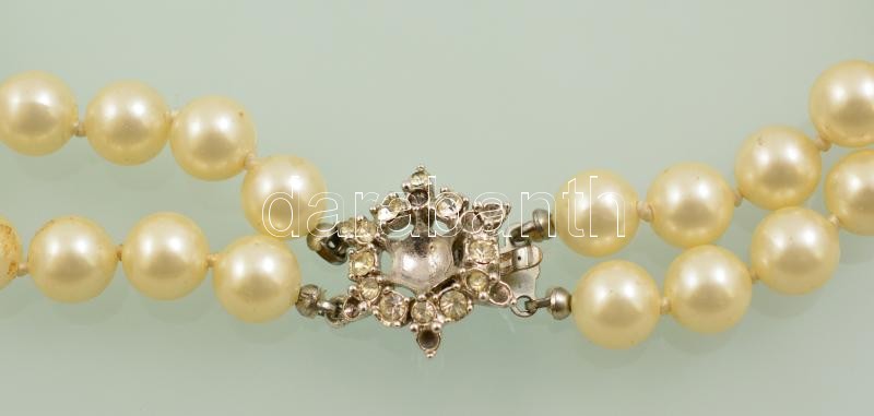 Kétsoros gyöngysor, strasszos kapcsolóval, h: 54 cm https://www.darabanth.com/de/336-Fernauktion/336.0/Kunst-Dokumente-andere-Sammelgebiete/Flohmarkt~500012/Ketsoros-gyongysor-strasszos-kapcsoloval-h-54-cm~II1884203