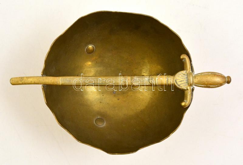 Réz tálka, tőr díszítéssel a tetején, m: 7 cm, d: 11 cm. https://www.darabanth.com/de/336-Fernauktion/336.0/Kunst-Dokumente-andere-Sammelgebiete/Flohmarkt~500012/Rez-talka-tor-diszitessel-a-tetejen-m-7-cm-d-11-cm~II1871028