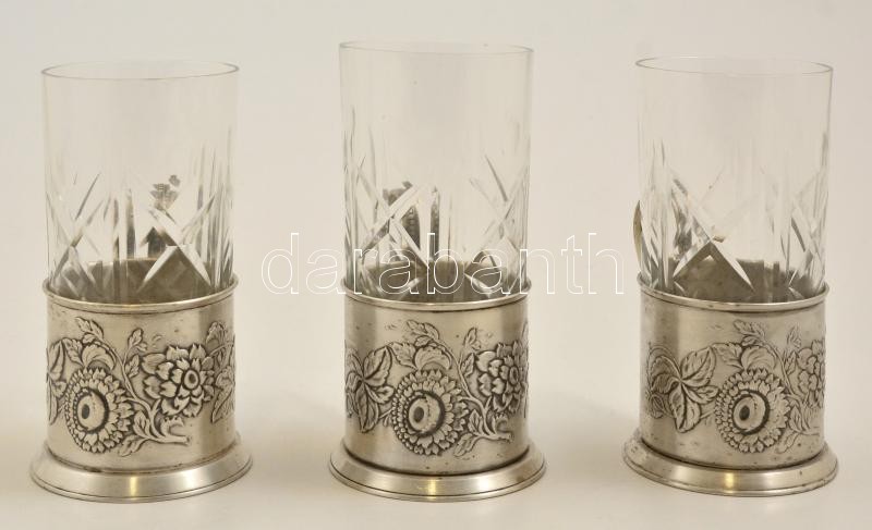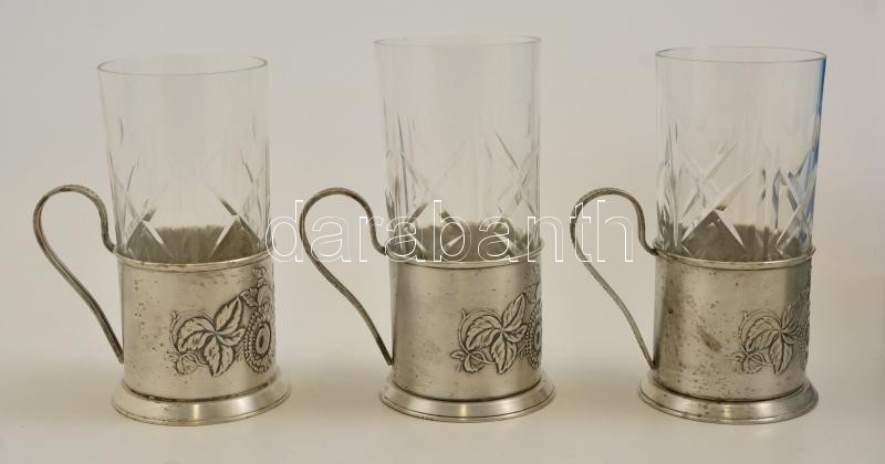 Beschreibung: Szovjet ezüstözött fém csészetartó, csiszolt poharakkal, hibátlan, jelzett, m:7 (15 cm) (3×)