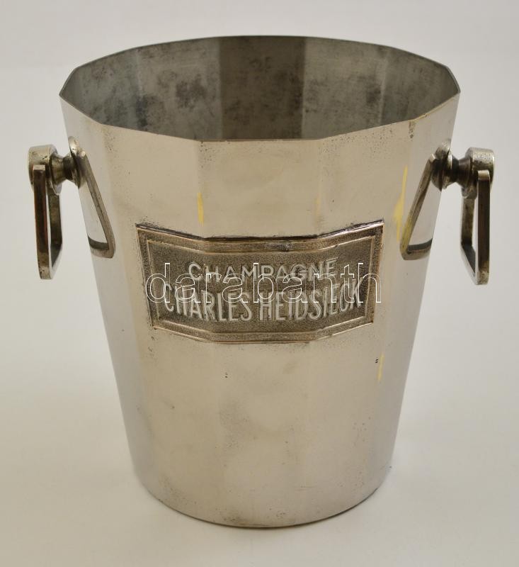 cca 1960 Nikkelezett fém pezsgős vödör felirattal Charles Heidsieck 21... https://www.darabanth.com/de/336-Fernauktion/336.0/Kunst-Dokumente-andere-Sammelgebiete/Flohmarkt~500012/cca-1960-Nikkelezett-fem-pezsgos-vodor-felirattal-Charles-Heidsieck-21-cm~II1884062