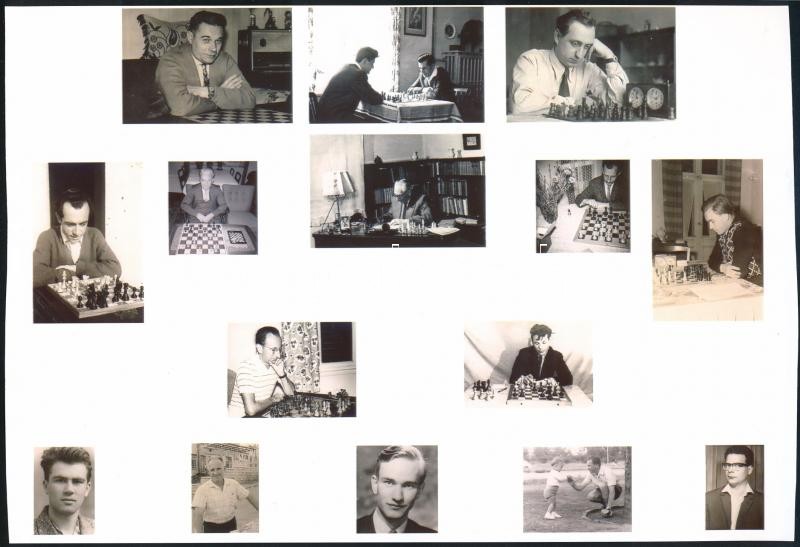 Sakkozókról készült fotók, 2 db (Marosi, Széll, Adorján, Tokaji-Nagy, Zsinka, Gelenczei Emil, szikra Rezső, Pápai János, stb.), modern fotók,, 9×12 és 15×22 cm