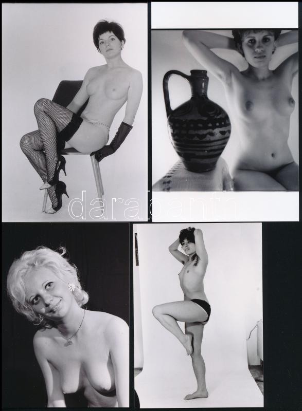 cca 1984 Önkéntes modellek, szolidan erotikus felvételek, 8 db vintage negatív + 8 db vintage fotó és/vagy mai nagyítás, a negatívok és a papírképek között nincs összefüggés, 24x36 mm és 24x15 cm között