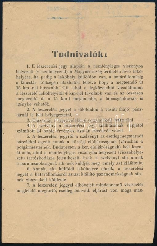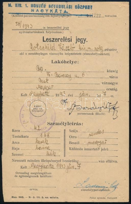 1943 Leszerelési jegy munkaszolgálatos részére. https://www.darabanth.com/de/336-Fernauktion/336.0/Kunst-Dokumente-andere-Sammelgebiete/Judaica~500025/1943-Leszerelesi-jegy-munkaszolgalatos-reszere~II1885961
