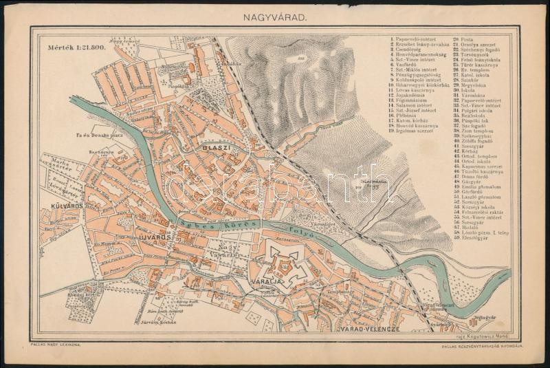 Nagyvárad térképe, 1:21800, Pallas nagy lexikona melléklete, 16×24 cm https://www.darabanth.com/de/336-Fernauktion/336.0/Kunst-Dokumente-andere-Sammelgebiete/Landkarten~500029/Nagyvarad-terkepe-121800-Pallas-nagy-lexikona-melleklete-16C39724-cm~II1885371