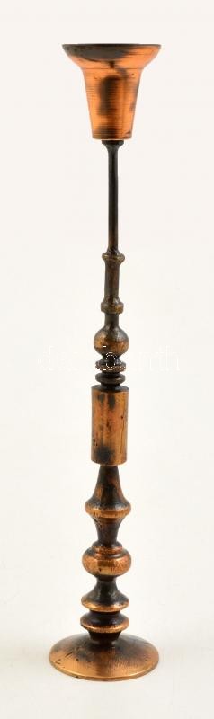 Percz János (1920-2000): Gyertyatartó. Kalapált réz. Jelzett 28 cm