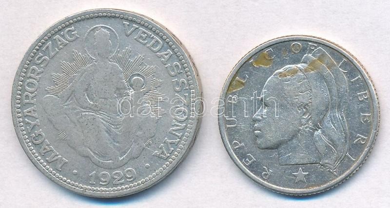 Beschreibung: Vegyes: 1929. 2P Ag "Madonna" + Libéria 1960. 25c Ag T:3,2-