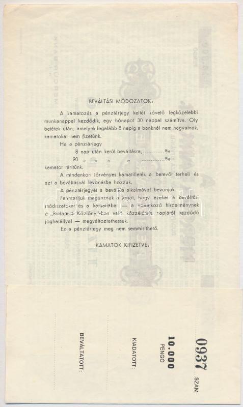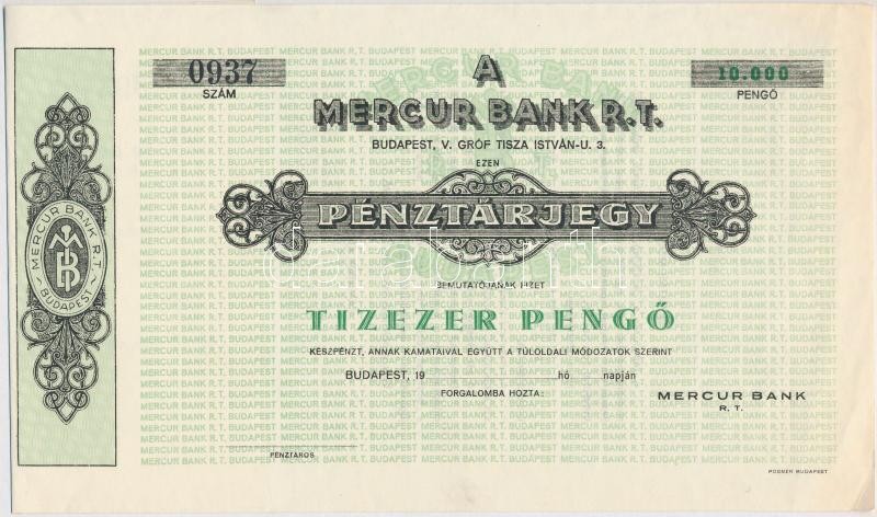 Beschreibung: 1926-1945. "Mercur Bank Rt." bemutatóra szóló, kitöltetlen pénztárjegye 10.000P-ről, vízjeles papíron T:I