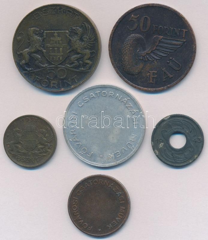 Vegyes: 6db-os bárca és zseton tétel, közte ~1946. 50Ft Br "BSZKR... https://www.darabanth.com/de/336-Fernauktion/336.0/Numismatik/Notgeld-aus-Papier-und-Metall~1500006/Vegyes-6db-os-barca-es-zseton-tetel-kozte-7E1946-50Ft-Br-BSZKRT-Budapest-Szekesfovarosi-~II1885926