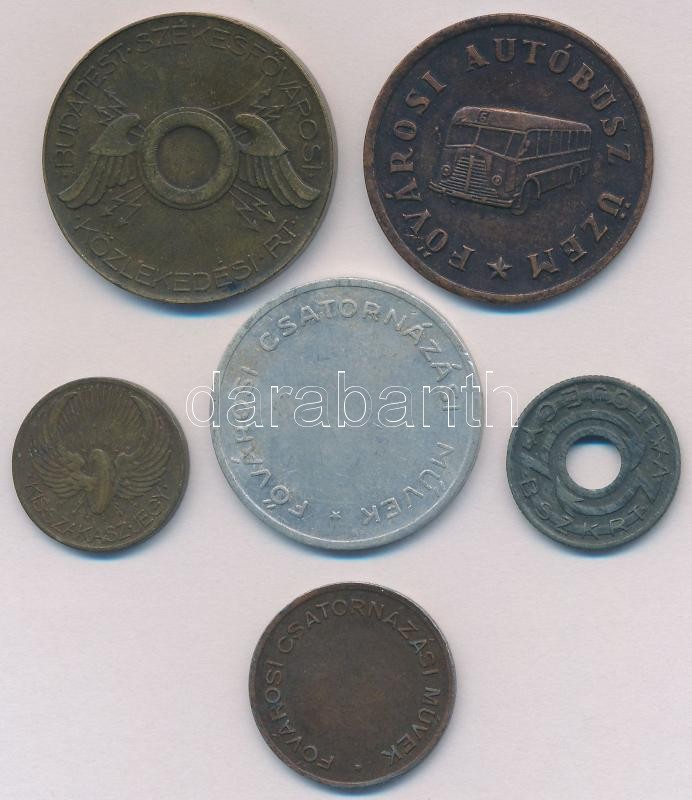 Beschreibung: Vegyes: 6db-os bárca és zseton tétel, közte ~1946. 50Ft Br "BSZKRT / Budapest Székesfővárosi Közlekedési Rt." bárca, ~1950. "FAÜ" 50Ft Fővárosi Autóbusz Üzem bárcája T:2-,2-