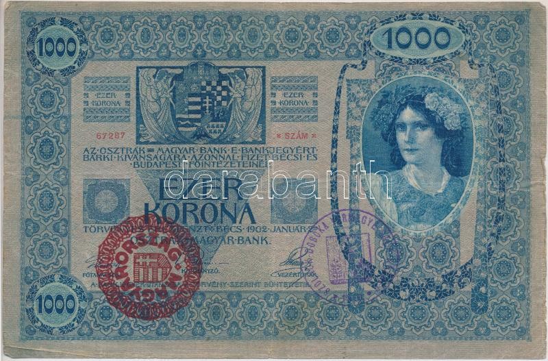 1902. 1000K piros "MAGYARORSZÁG" körbélyegzővel és hamis &q... https://www.darabanth.com/de/336-Fernauktion/336.0/Numismatik/Ungarische-Banknoten~1500007/1902-1000K-piros-MAGYARORSZAG-korbelyegzovel-es-hamis-SZOLNOK-DOBOKA-VARMEGYE-SZEK-KOZS~II1888462