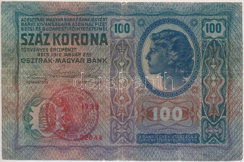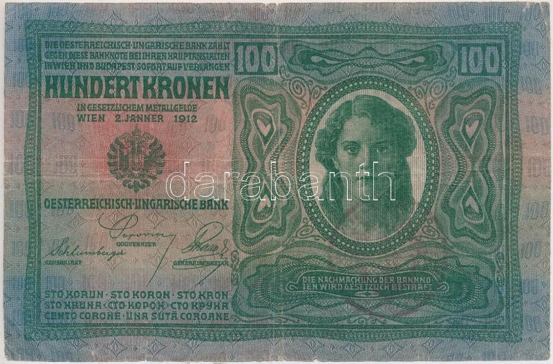 Beschreibung: 1912. 100K kiolvashatatlan felülbélyegzéssel T:III,III-