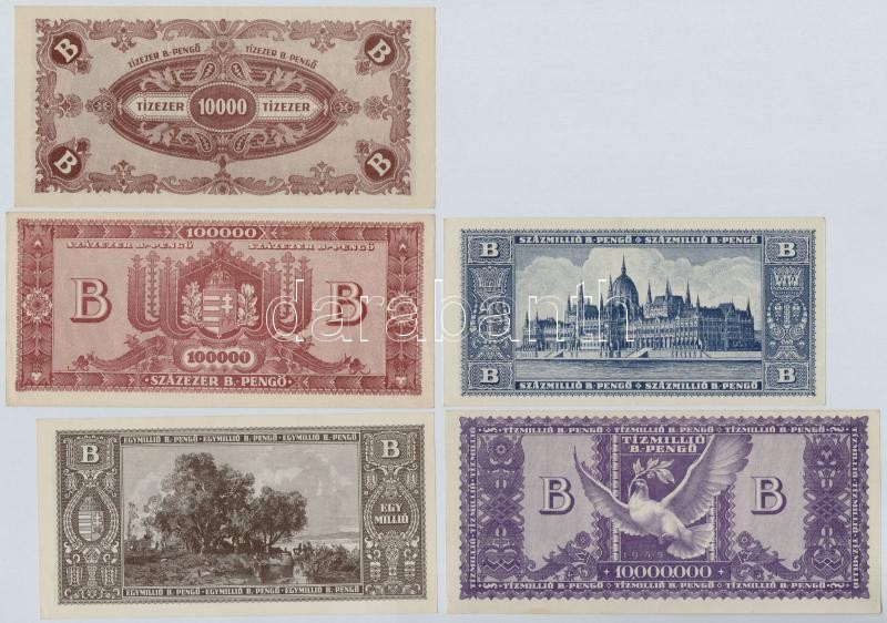 Beschreibung: 1946. 10.000BP + 100.000BP + 1.000.000BP + 10.000.000BP halvány hajtásnyom + 100.000.000BP T:I,II