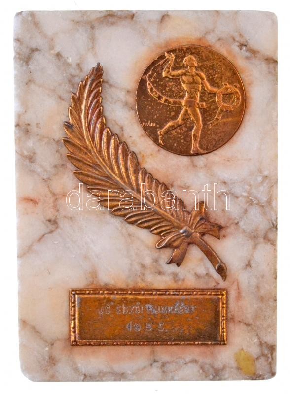Beschreibung: 1955. "Jó edzői munkáért" Iván István érem márványlapon (86x119mm) T:2